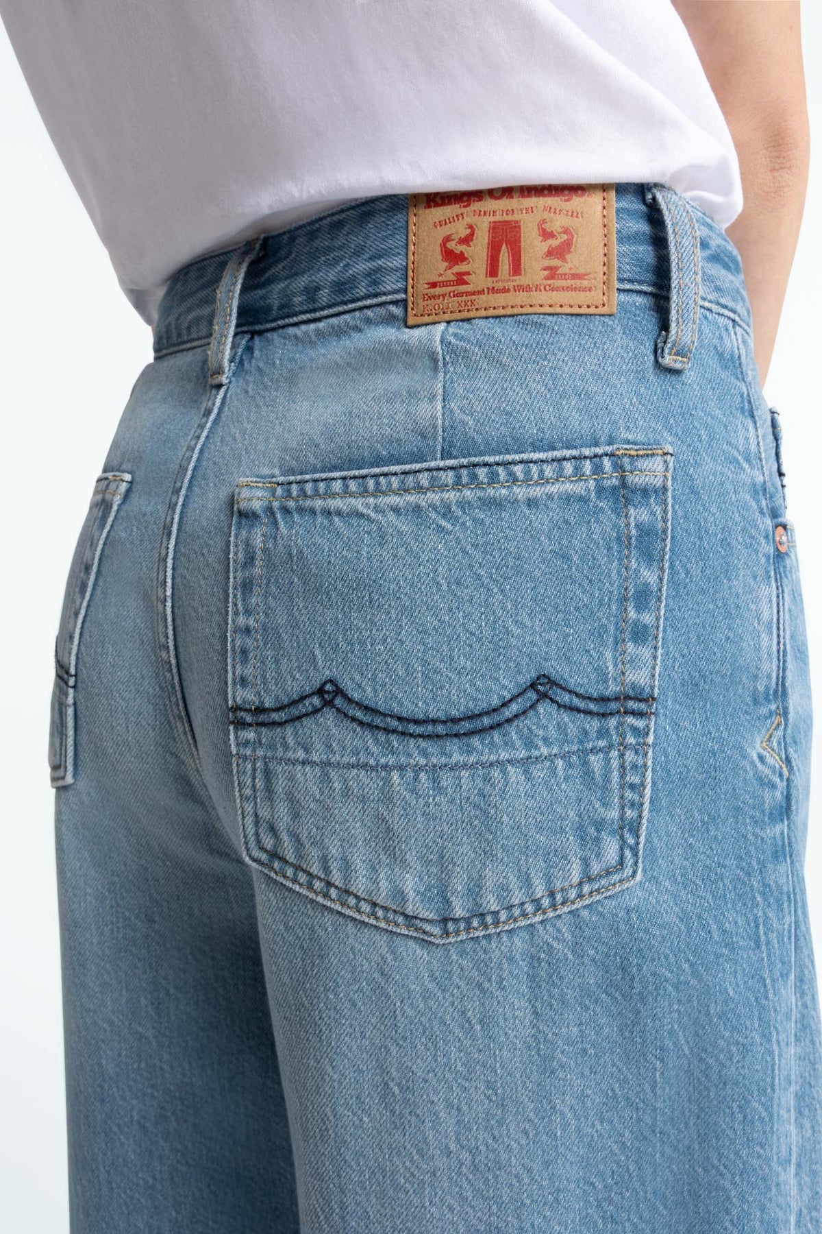 Découvrez LEILA, un modèle emblématique de Kings of Indigo, avec sa taille haute et sa jambe ballon caractéristique. Jouez avec les tailles pour créer différents looks : optez pour une taille plus longue pour une coupe moins courte. Portez votre taille habituelle pour une taille haute et cintrée, ou une taille au-dessus pour une coupe plus décontractée. Ce modèle est unisexe. Pour choisir votre taille : si vous êtes un homme, choisissez une taille au-dessus de votre taille habituelle et la longueur la plus importante.